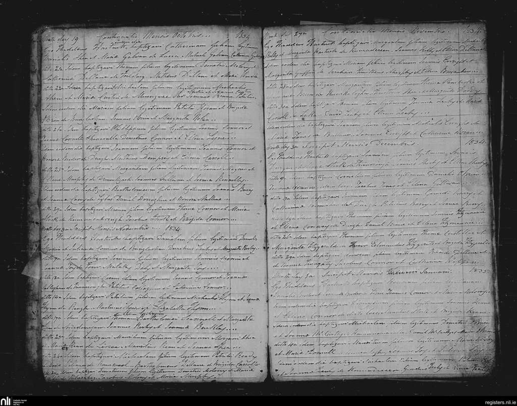 Duagh; County of Kerry; Diocese of Kerry. Baptisms, Oct. 1834 to Jan. 1835