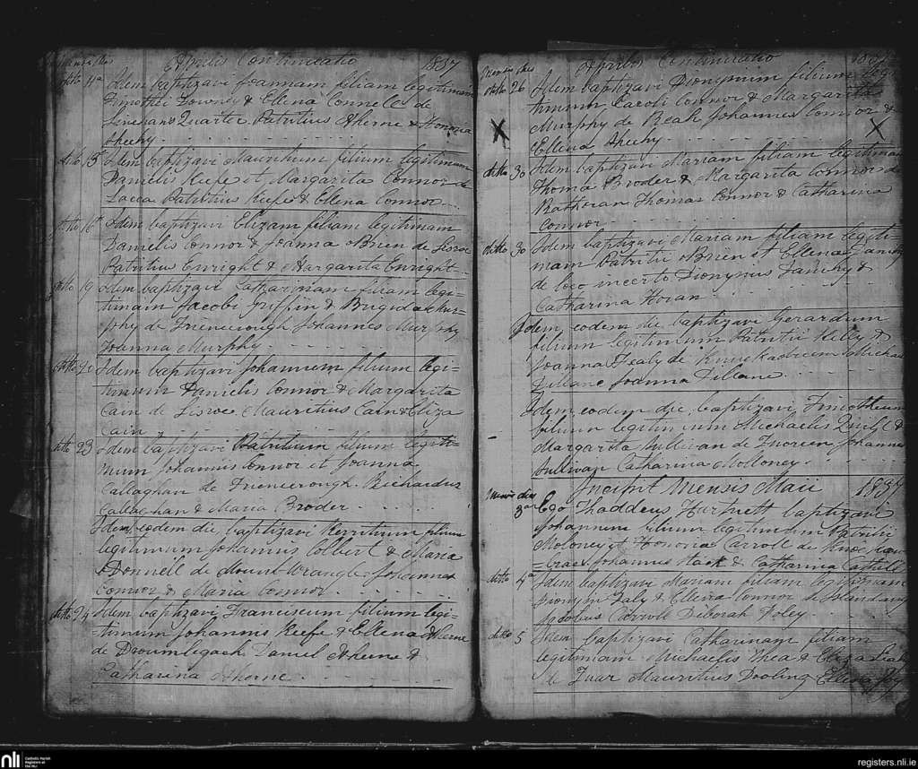 Duagh; County of Kerry; Diocese of Kerry. Baptisms, Apr. 1837 to May 1837