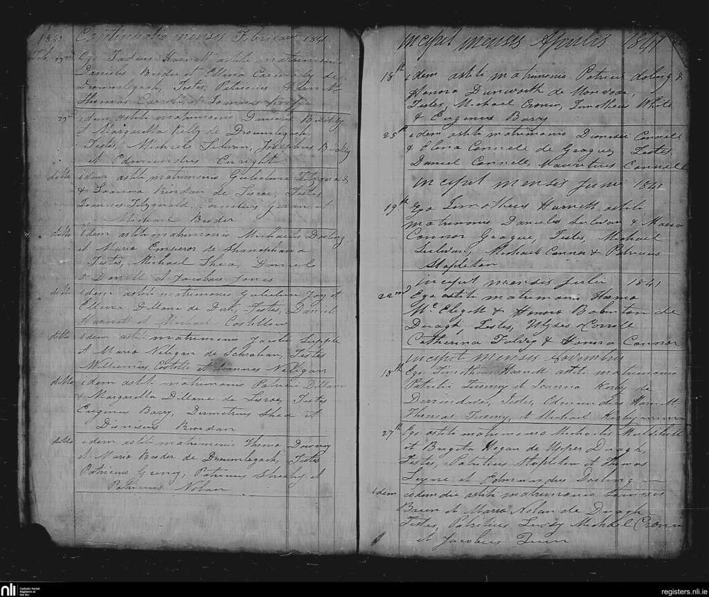 Duagh; County of Kerry; Diocese of Kerry. Marriages, Feb. 1841 to Nov. 1841