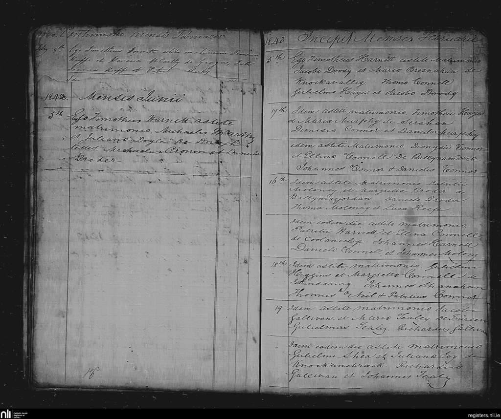 Duagh; County of Kerry; Diocese of Kerry. Marriages, June 1842 to Feb. 1843