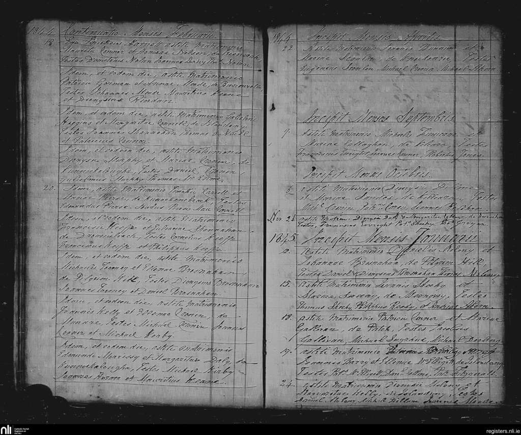Duagh; County of Kerry; Diocese of Kerry. Marriages, Feb. 1844 to Jan. 1845