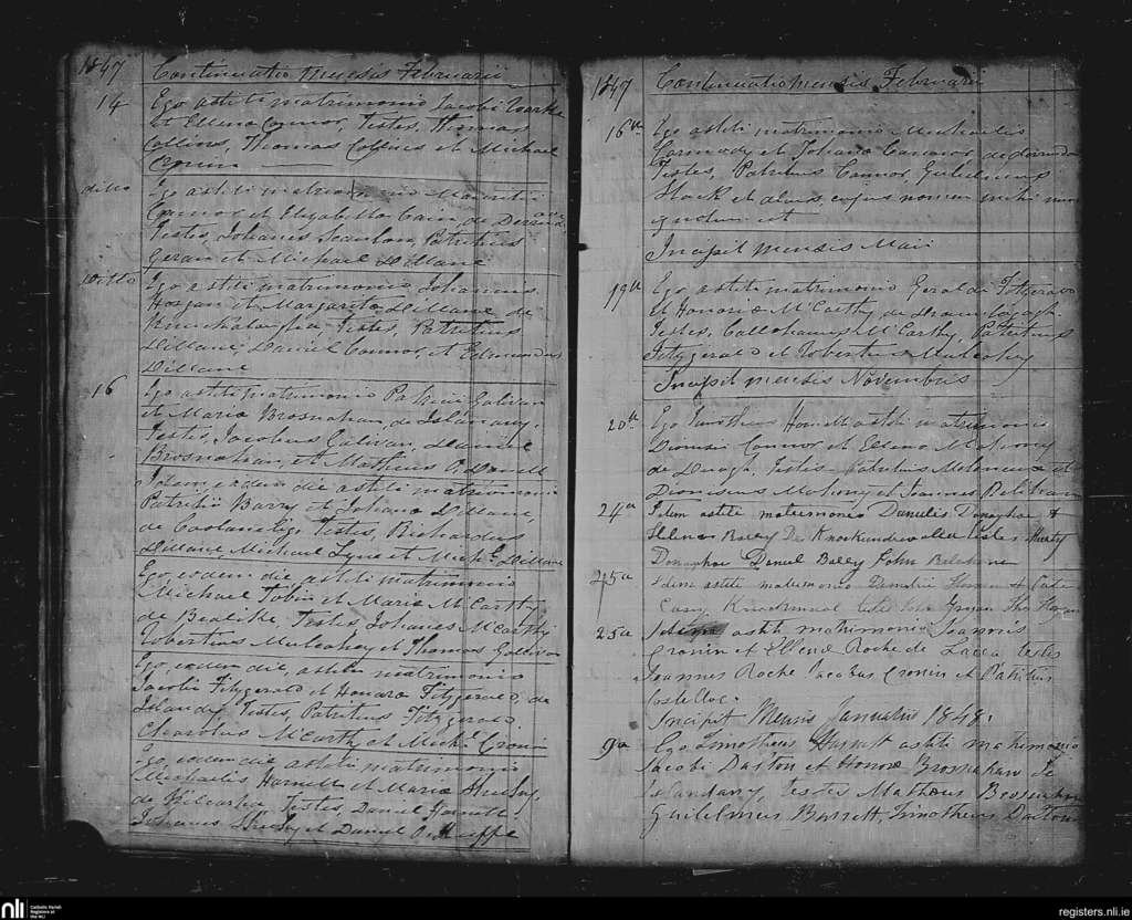 Duagh; County of Kerry; Diocese of Kerry. Marriages, Feb. 1847 to Jan. 1848