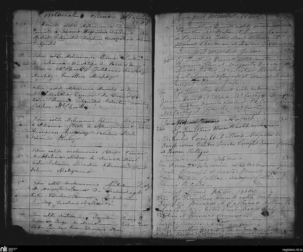 Duagh; County of Kerry; Diocese of Kerry. Marriages, Mar. 1848 to Nov. 1848
