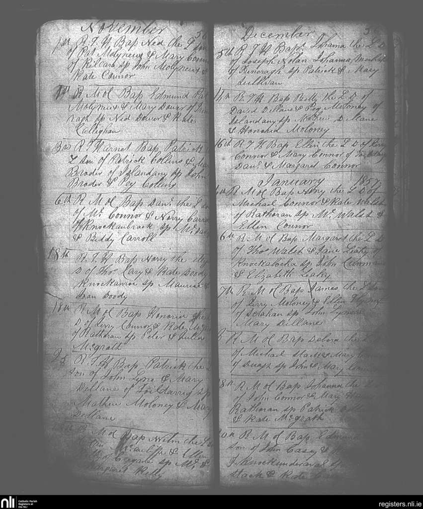 Duagh; County of Kerry; Diocese of Kerry. Baptisms, Nov. 1856 to Jan. 1857