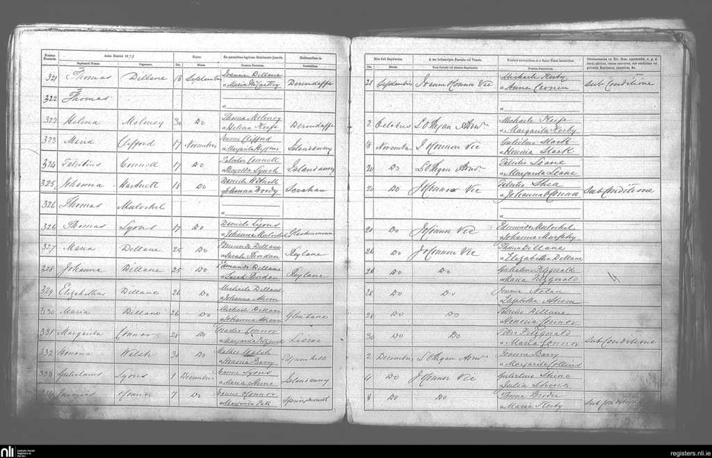 Duagh; County of Kerry; Diocese of Kerry. Baptisms, Sep. 1873 to Dec. 1873