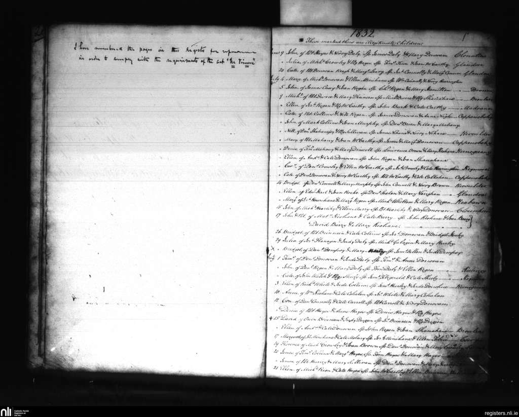 Kilmacabea; County of Cork; Diocese of Cork and Ross. Baptisms, June 1832 to Aug. 1832