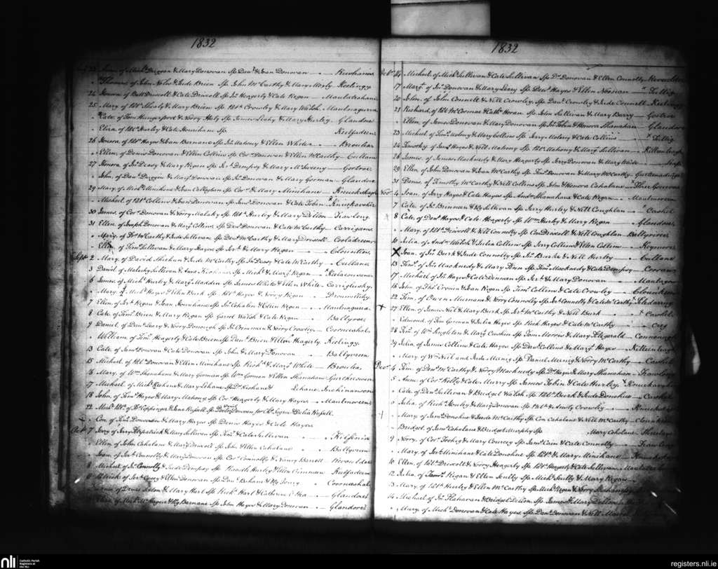 Kilmacabea; County of Cork; Diocese of Cork and Ross. Baptisms, Aug. 1832 to Dec. 1832