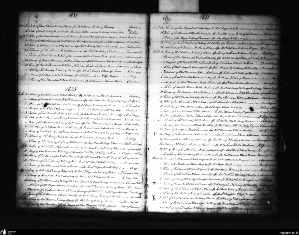 Kilmacabea; County of Cork; Diocese of Cork and Ross. Baptisms, Dec. 1832 to Mar. 1833