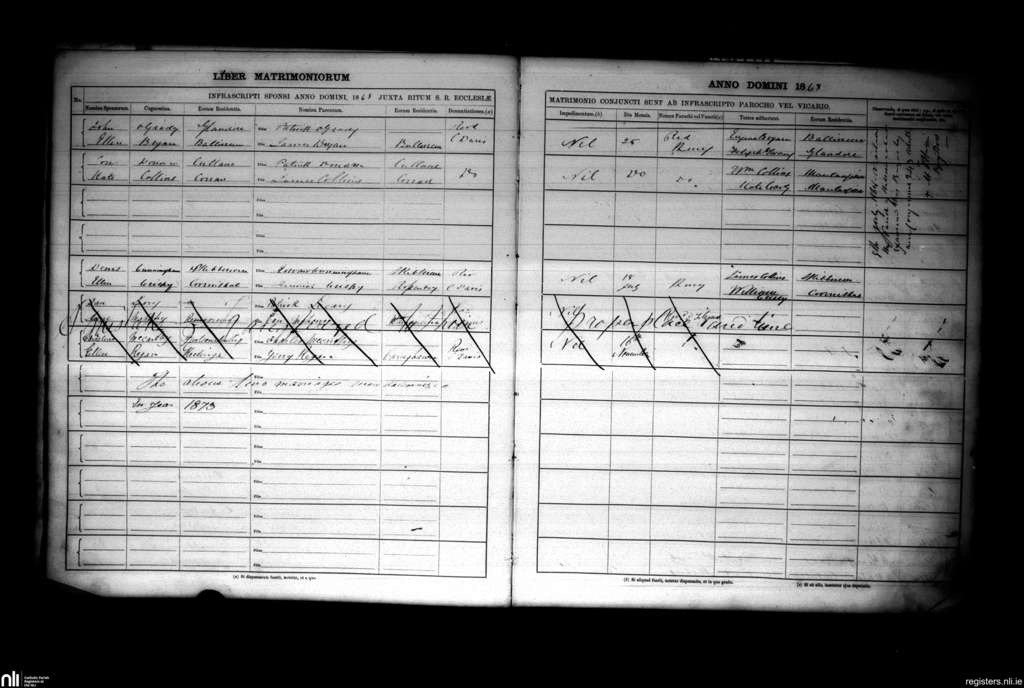 Kilmacabea; County of Cork; Diocese of Cork and Ross. Marriages, Feb. 1868 to Aug. 1868