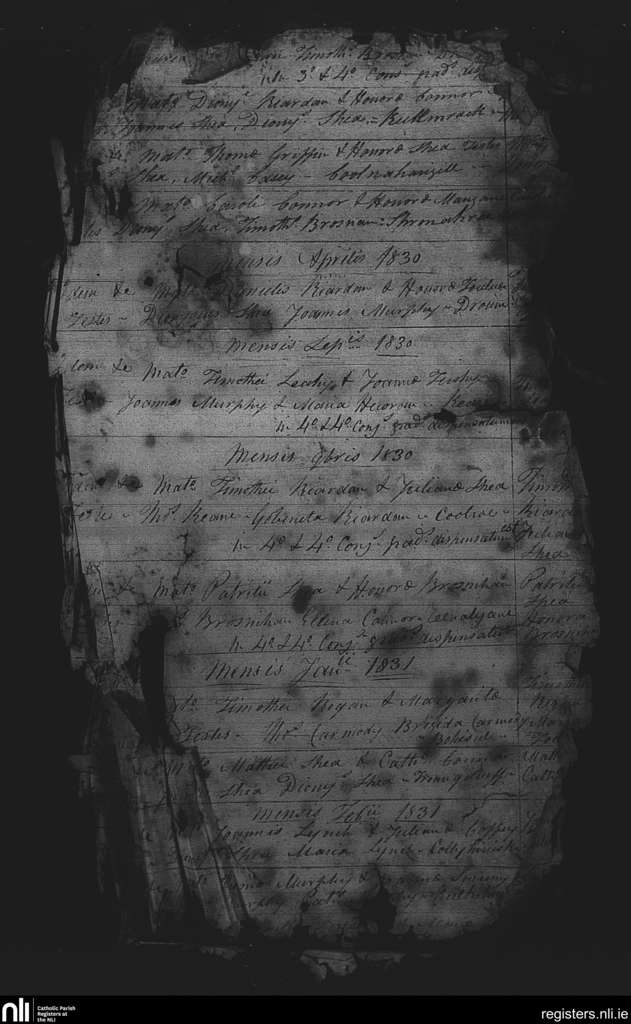 Glenbeigh; County of Kerry; Diocese of Kerry. Marriages, Mar. 1830 to Feb. 1831