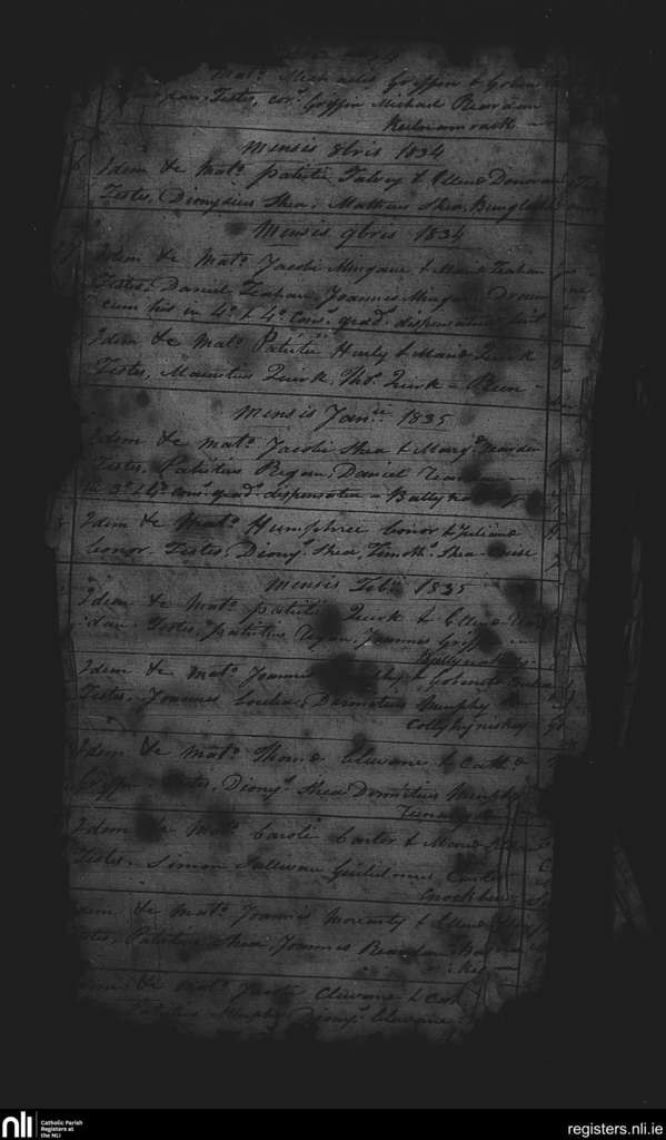 Glenbeigh; County of Kerry; Diocese of Kerry. Marriages, Sep. 1834 to Feb. 1835