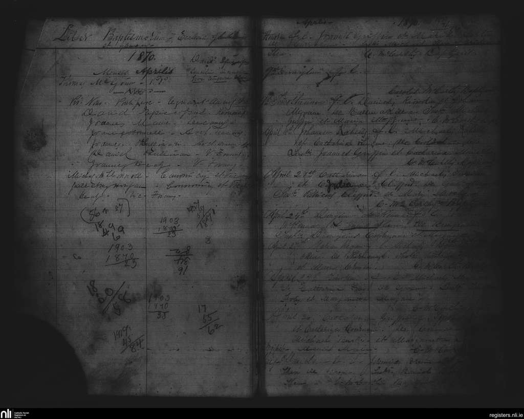 Glenbeigh; County of Kerry; Diocese of Kerry. Baptisms, Apr. 1870 to May 1870