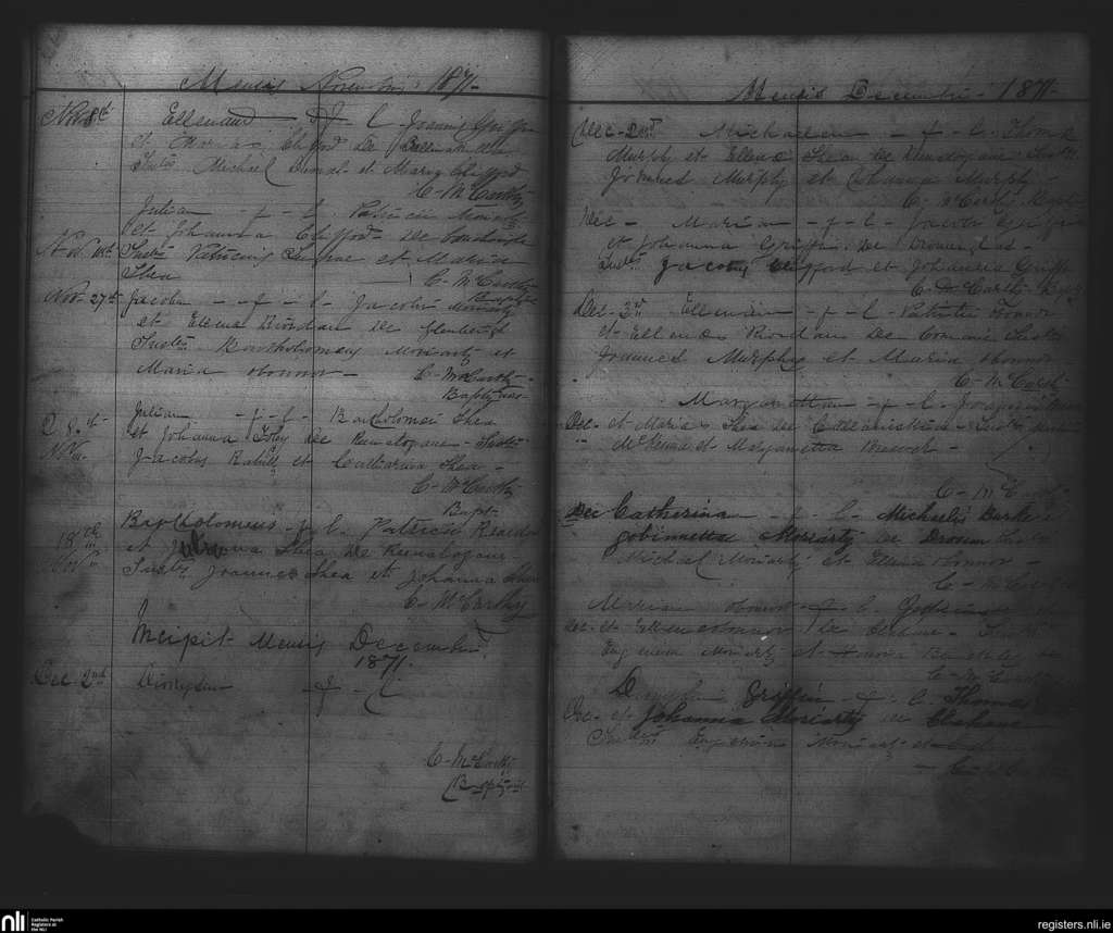 Glenbeigh; County of Kerry; Diocese of Kerry. Baptisms, Nov. 1871 to Dec. 1871
