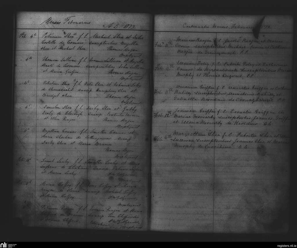 Glenbeigh; County of Kerry; Diocese of Kerry. Baptisms, Feb. 1872