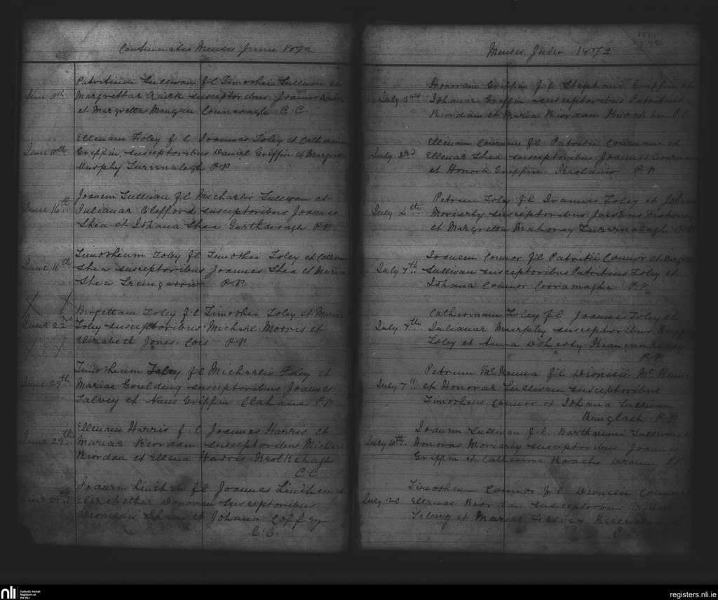 Glenbeigh; County of Kerry; Diocese of Kerry. Baptisms, June 1872 to July 1872
