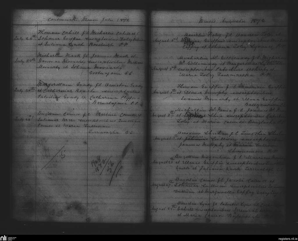Glenbeigh; County of Kerry; Diocese of Kerry. Baptisms, July 1872 to Aug. 1872