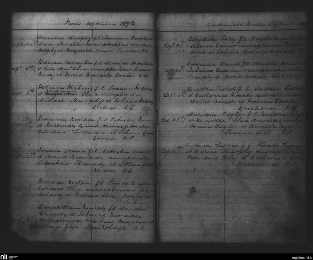 Glenbeigh; County of Kerry; Diocese of Kerry. Baptisms, Sep. 1872