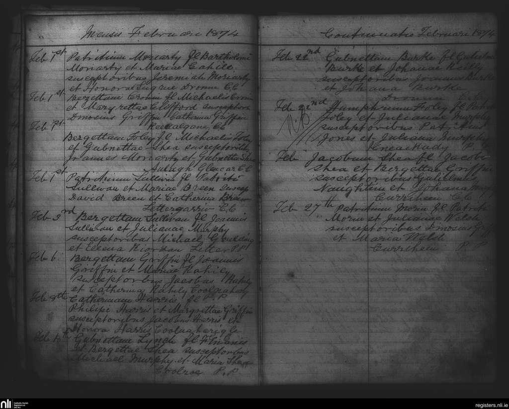 Glenbeigh; County of Kerry; Diocese of Kerry. Baptisms, Feb. 1874
