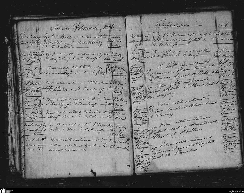 Lixnaw; County of Kerry; Diocese of Kerry. Marriages, Feb. 1826