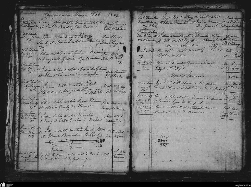 Lixnaw; County of Kerry; Diocese of Kerry. Marriages, Feb. 1827 to Jan. 1828