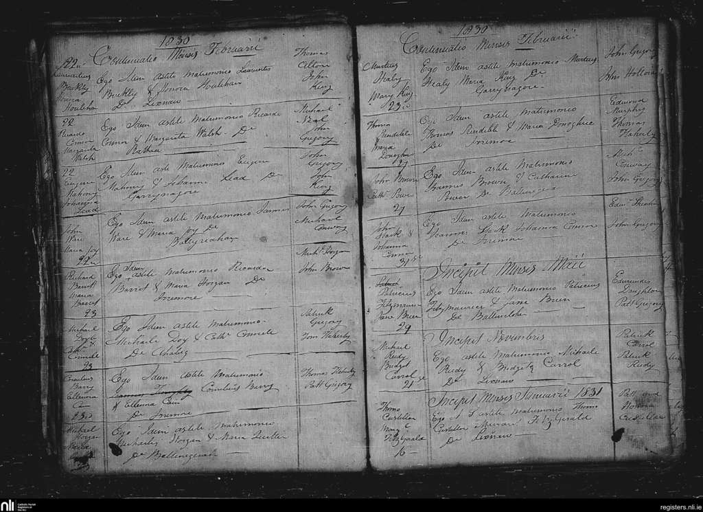 Lixnaw; County of Kerry; Diocese of Kerry. Marriages, Feb. 1830 to Jan. 1831