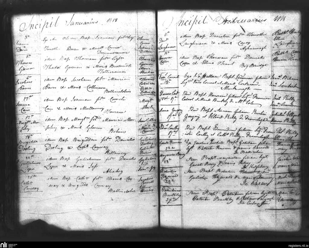 Lixnaw; County of Kerry; Diocese of Kerry. Baptisms, Jan. 1818 to Feb. 1818