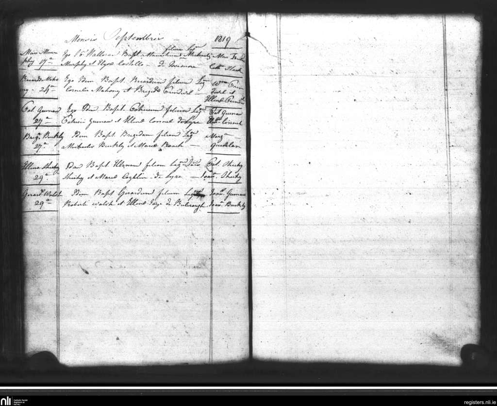 Lixnaw; County of Kerry; Diocese of Kerry. Baptisms, Sep. 1819