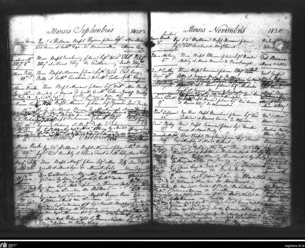 Lixnaw; County of Kerry; Diocese of Kerry. Baptisms, Sep. 1820 to Nov. 1820