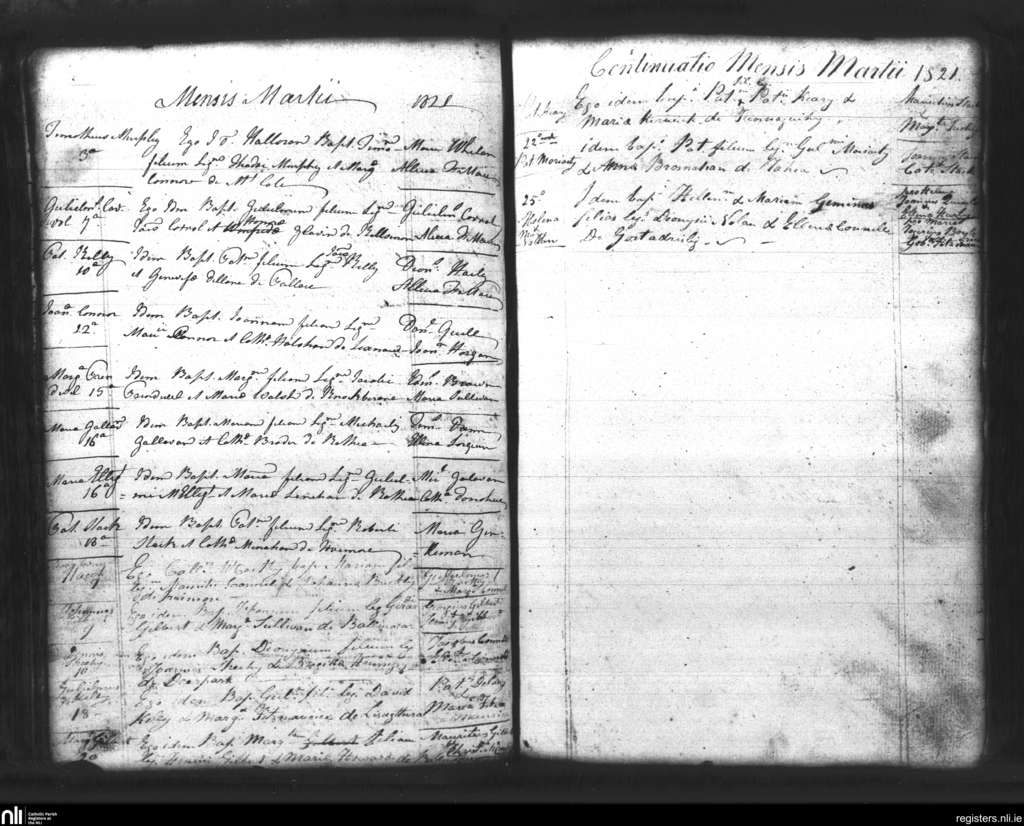 Lixnaw; County of Kerry; Diocese of Kerry. Baptisms, Mar. 1821