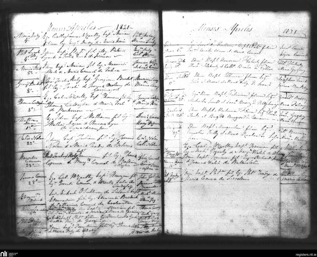 Lixnaw; County of Kerry; Diocese of Kerry. Baptisms, Apr. 1821