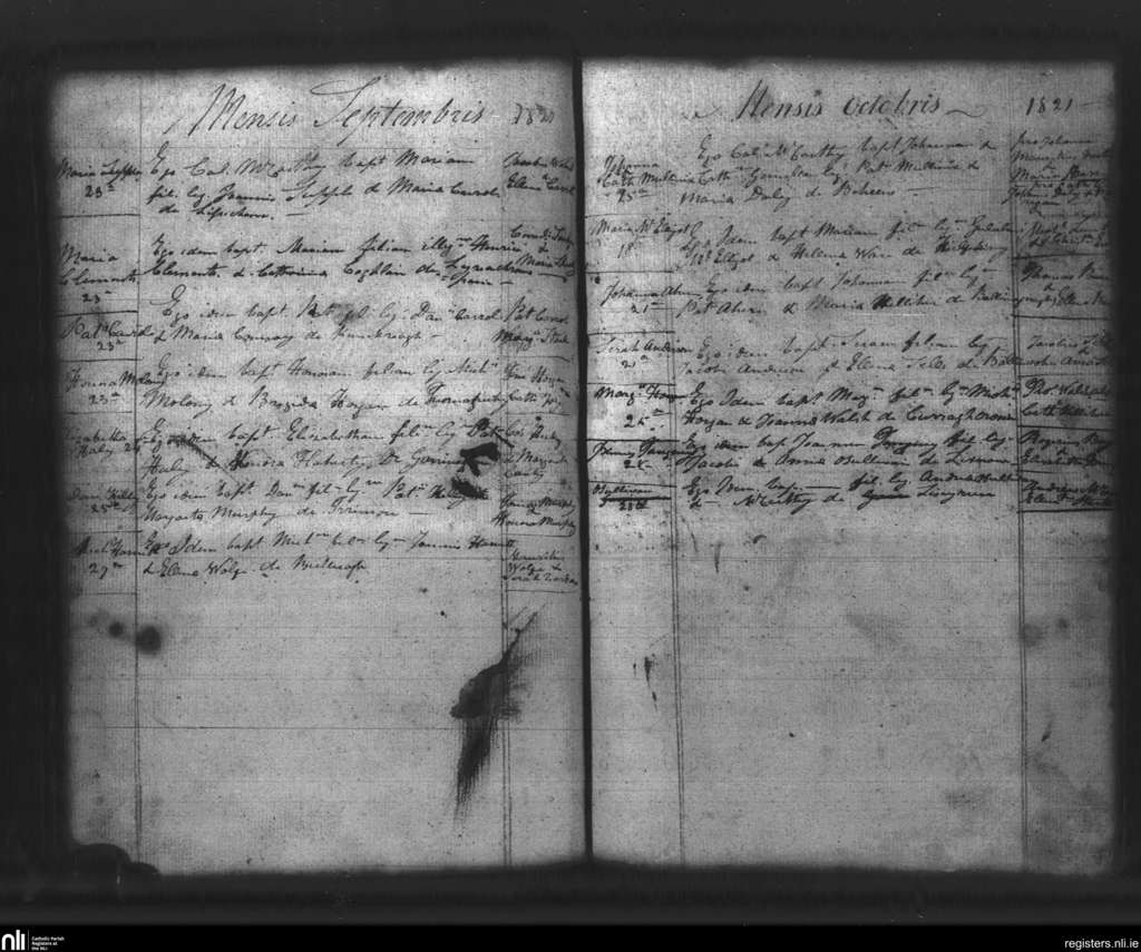 Lixnaw; County of Kerry; Diocese of Kerry. Baptisms, Sep. 1821 to Oct. 1821