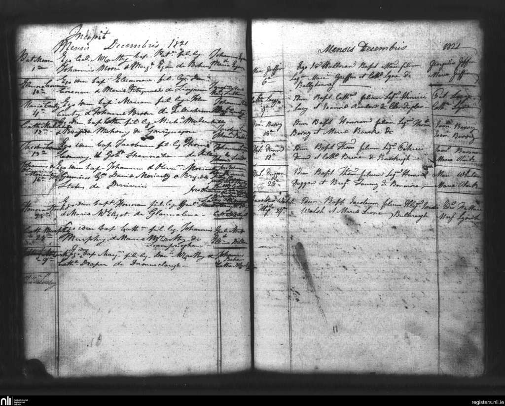 Lixnaw; County of Kerry; Diocese of Kerry. Baptisms, Dec. 1821