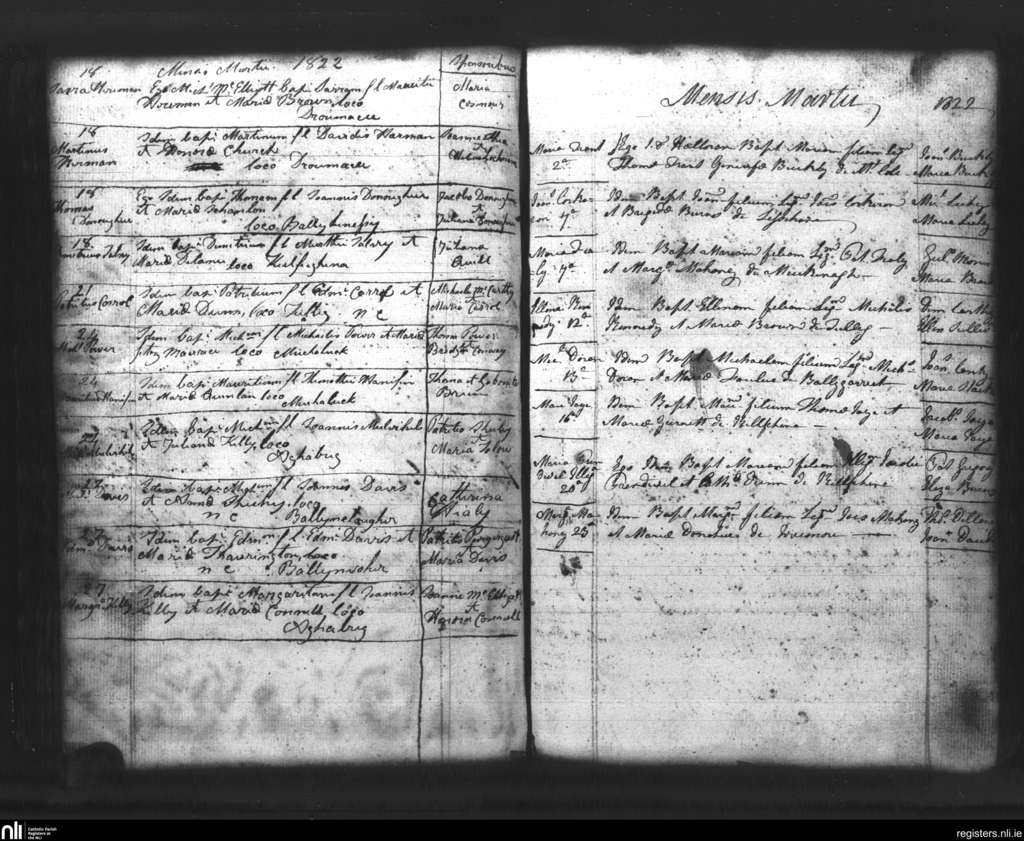 Lixnaw; County of Kerry; Diocese of Kerry. Baptisms, Mar. 1822
