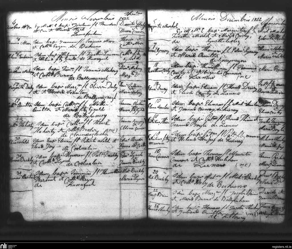 Lixnaw; County of Kerry; Diocese of Kerry. Baptisms, Nov. 1822 to Dec. 1822