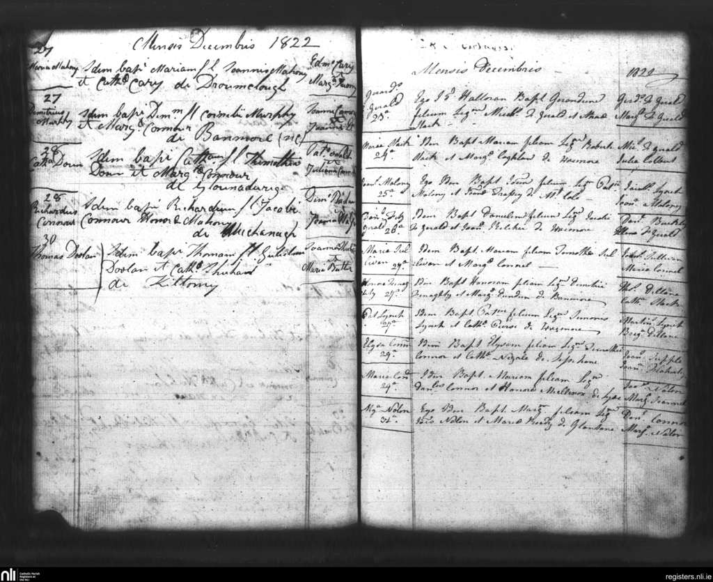 Lixnaw; County of Kerry; Diocese of Kerry. Baptisms, Dec. 1822