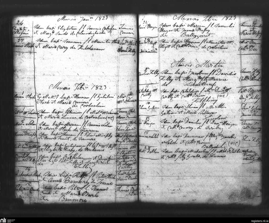 Lixnaw; County of Kerry; Diocese of Kerry. Baptisms, Jan. 1823 to Mar. 1823
