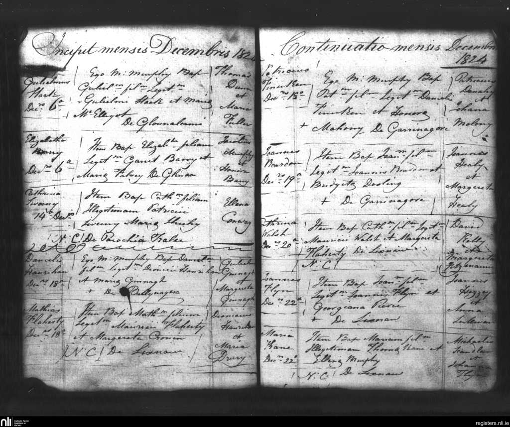 Lixnaw; County of Kerry; Diocese of Kerry. Baptisms, Dec. 1824
