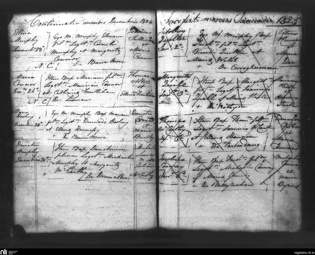 Lixnaw; County of Kerry; Diocese of Kerry. Baptisms, Dec. 1824 to Jan. 1825