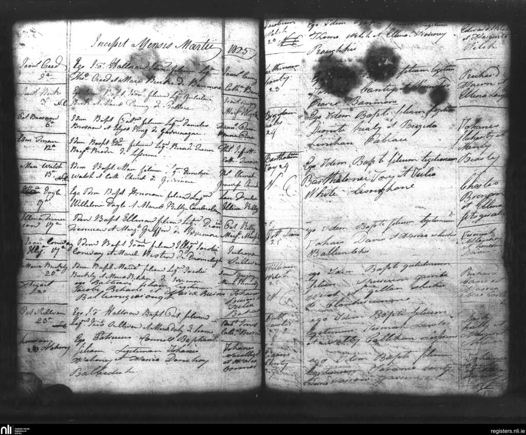 Lixnaw; County of Kerry; Diocese of Kerry. Baptisms, Mar. 1825