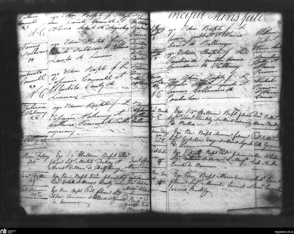 Lixnaw; County of Kerry; Diocese of Kerry. Baptisms, June 1825 to July 1825