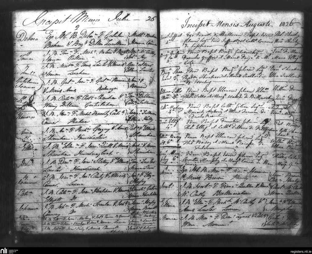 Lixnaw; County of Kerry; Diocese of Kerry. Baptisms, July 1826 to Aug. 1826