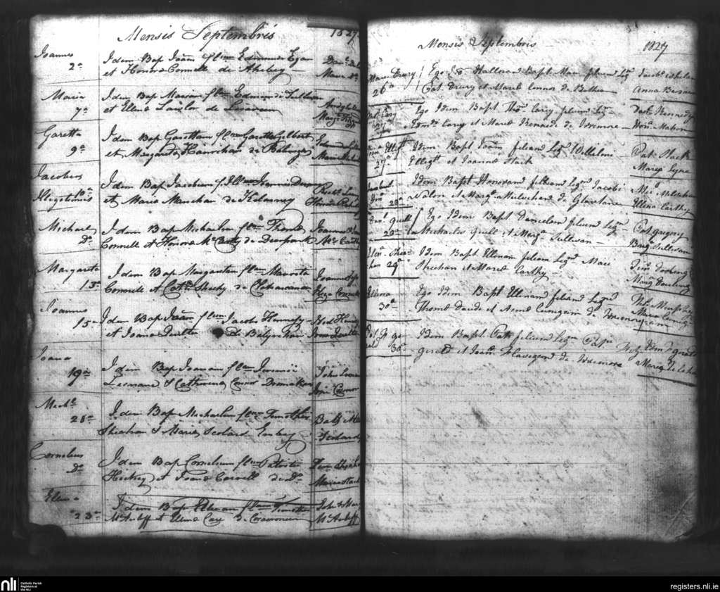 Lixnaw; County of Kerry; Diocese of Kerry. Baptisms, Sep. 1827