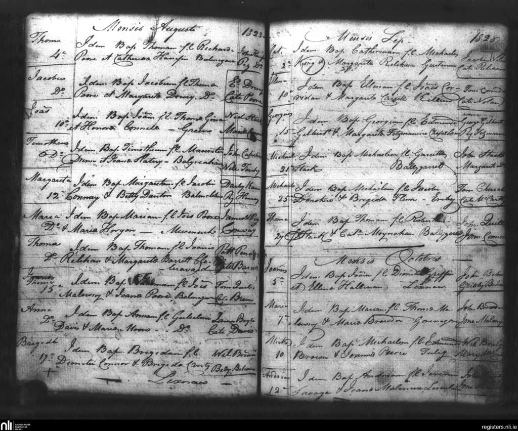 Lixnaw; County of Kerry; Diocese of Kerry. Baptisms, Aug. 1828 to Oct. 1828