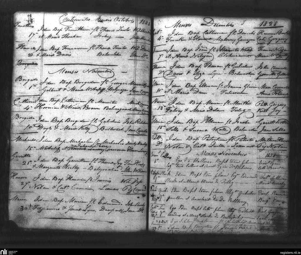 Lixnaw; County of Kerry; Diocese of Kerry. Baptisms, Oct. 1828 to Dec. 1828