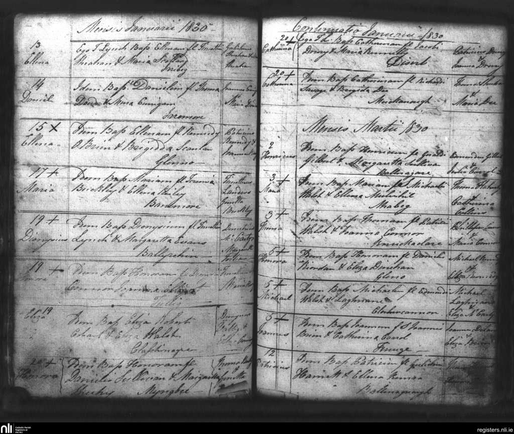 Lixnaw; County of Kerry; Diocese of Kerry. Baptisms, Jan. 1830 to Mar. 1830