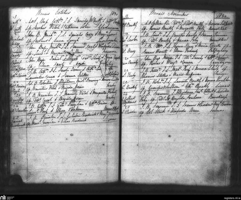 Lixnaw; County of Kerry; Diocese of Kerry. Baptisms, Oct. 1830 to Nov. 1830