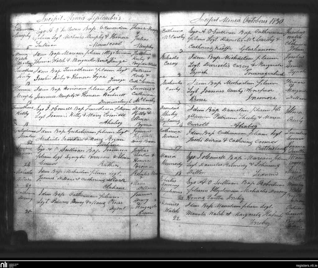 Lixnaw; County of Kerry; Diocese of Kerry. Baptisms, Sep. 1830 to Oct. 1830