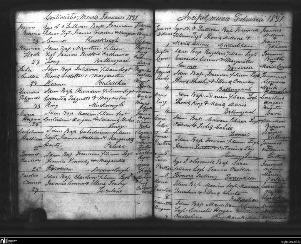 Lixnaw; County of Kerry; Diocese of Kerry. Baptisms, Jan. 1831 to Feb. 1831
