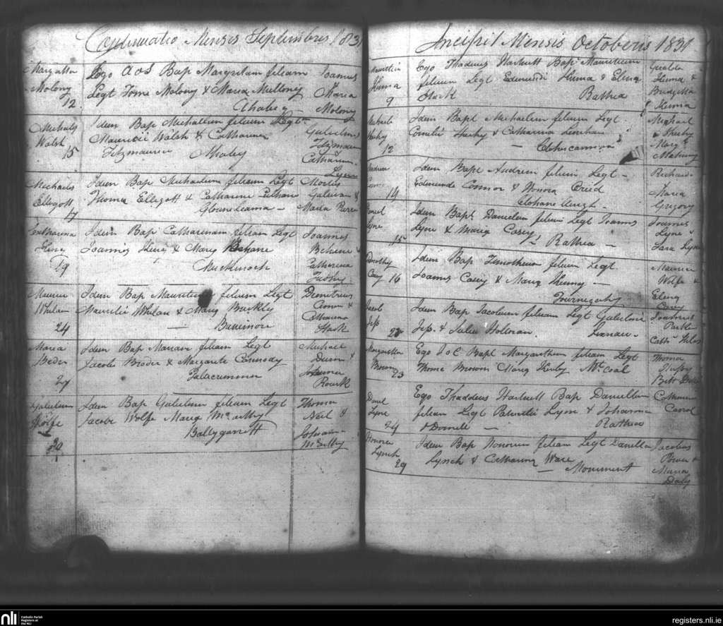 Lixnaw; County of Kerry; Diocese of Kerry. Baptisms, Sep. 1831 to Oct. 1831