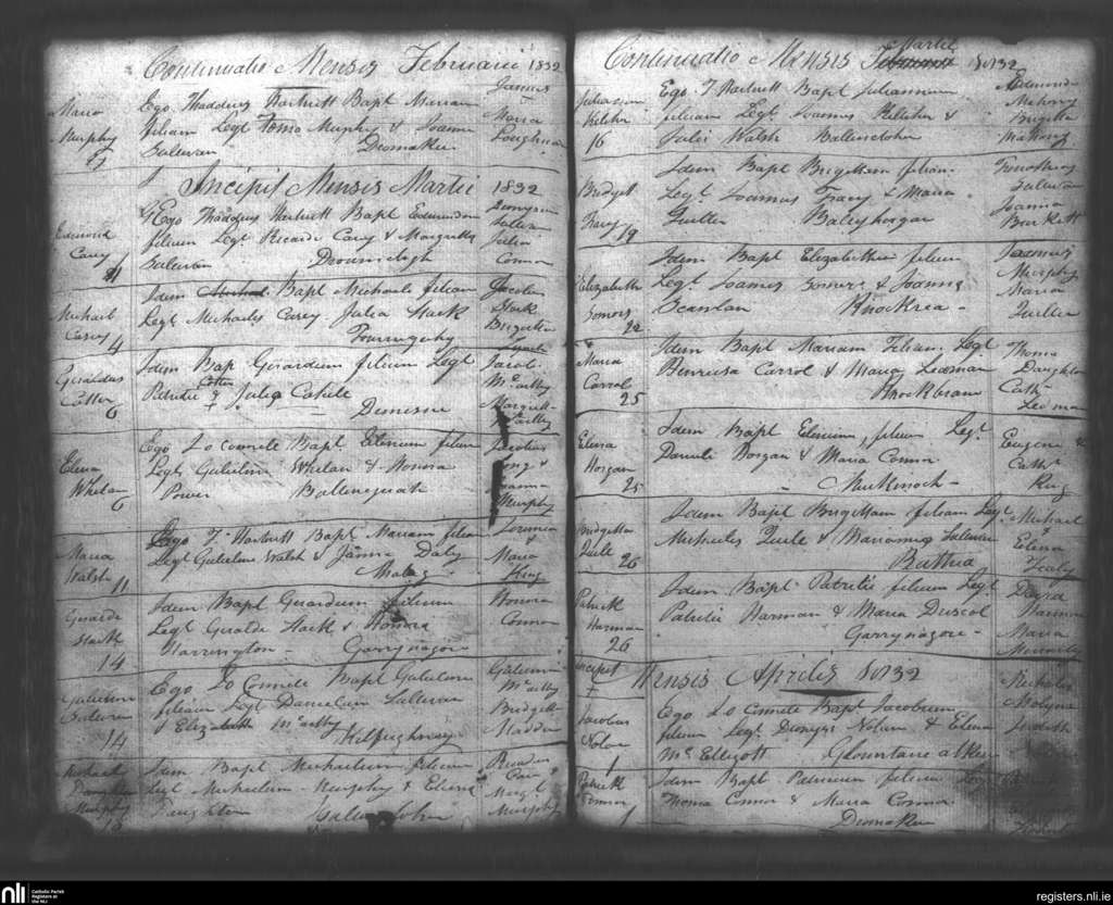 Lixnaw; County of Kerry; Diocese of Kerry. Baptisms, Feb. 1832 to Apr. 1832